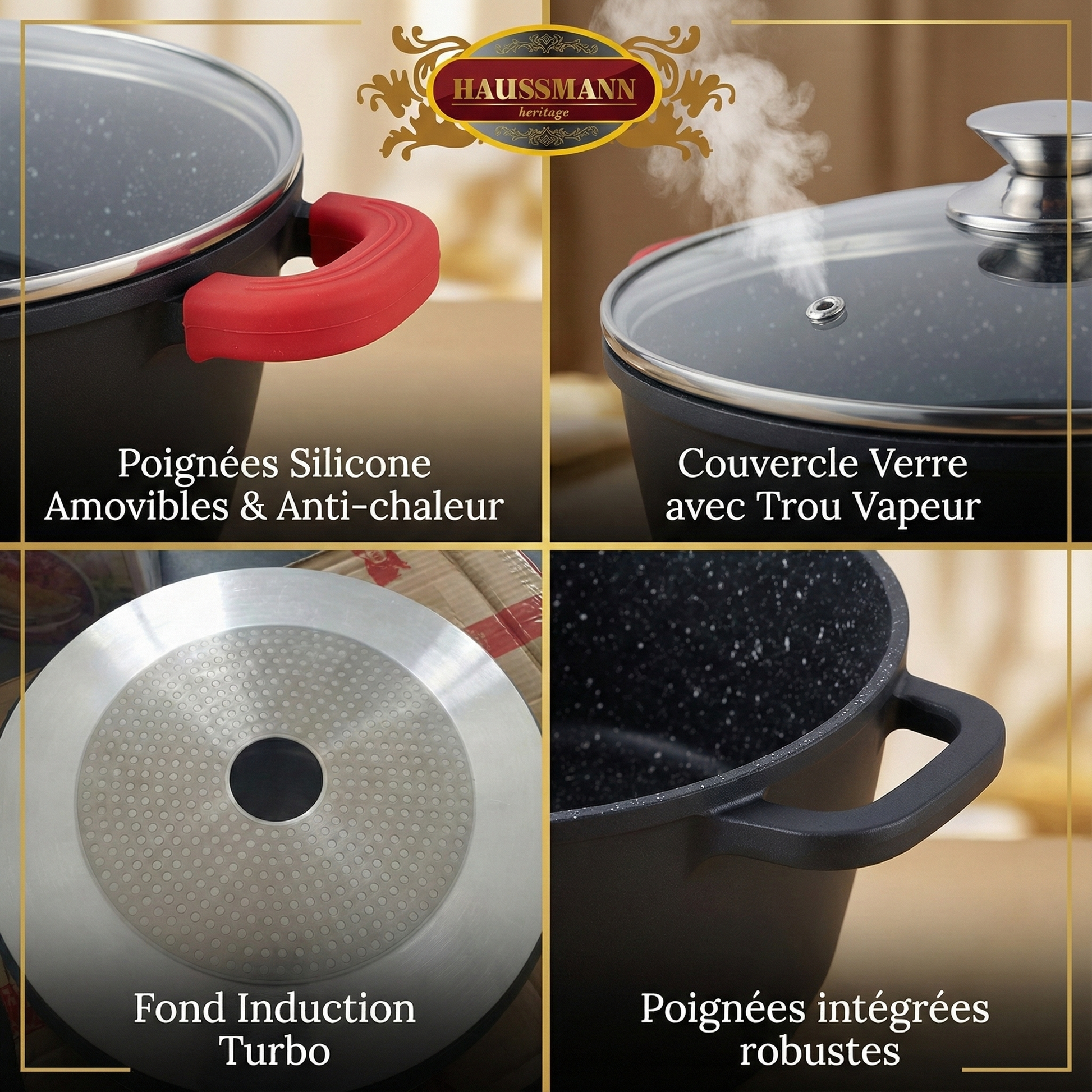 Haussmann Héritage® - Faitout / Marmite | Fonte d'Aluminium, Revêtement Pierre | Induction & Lave-Vaisselle