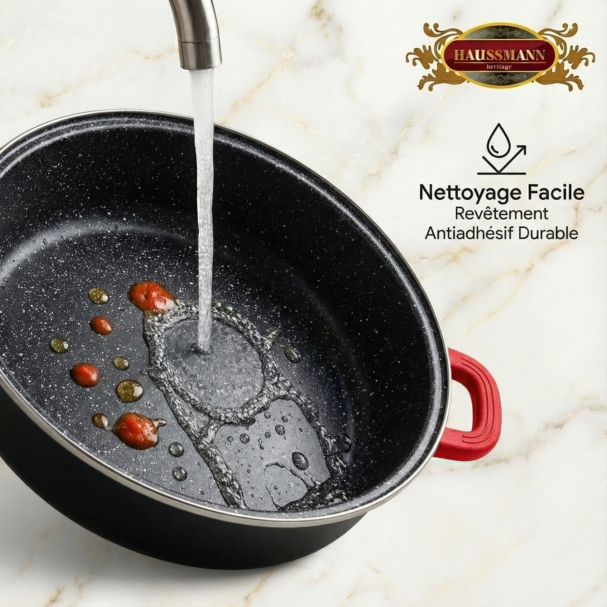 Haussmann Héritage® - Sautoir Familial XXL | Ø 32 à 40 cm | Fonte d'Aluminium, Revêtement Pierre | Induction & Lave-Vaisselle